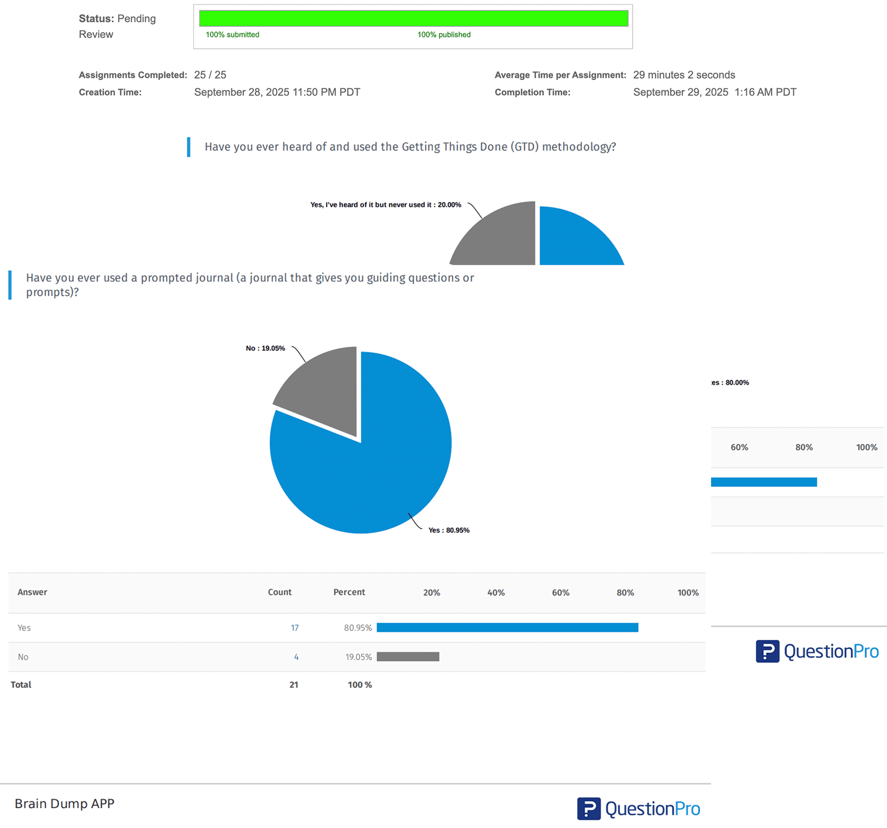 We noticed that journaling was both popular and aligned with GTD. So I decided to run a survey to test the idea.