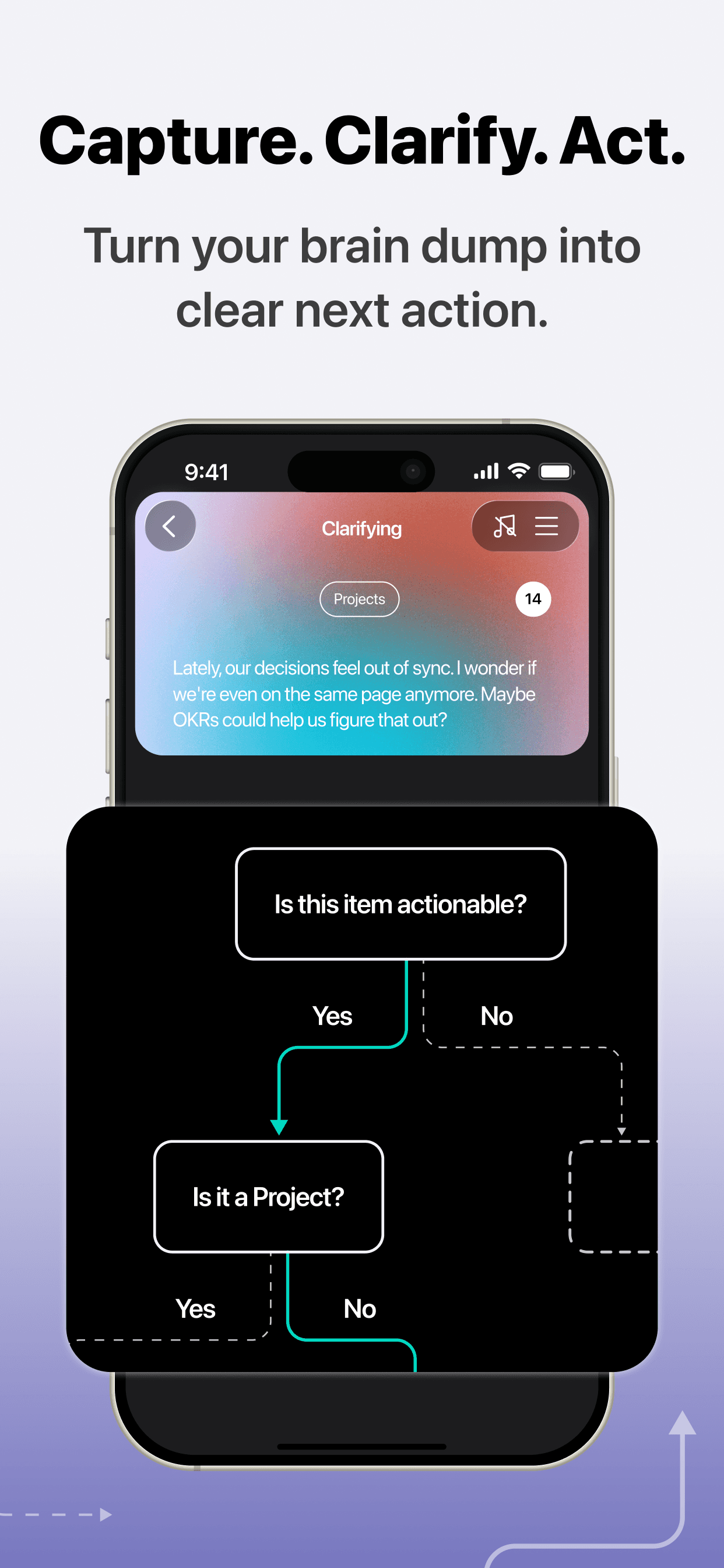 The biggest UX recommendation was to separate Brain Dump and Clarify.