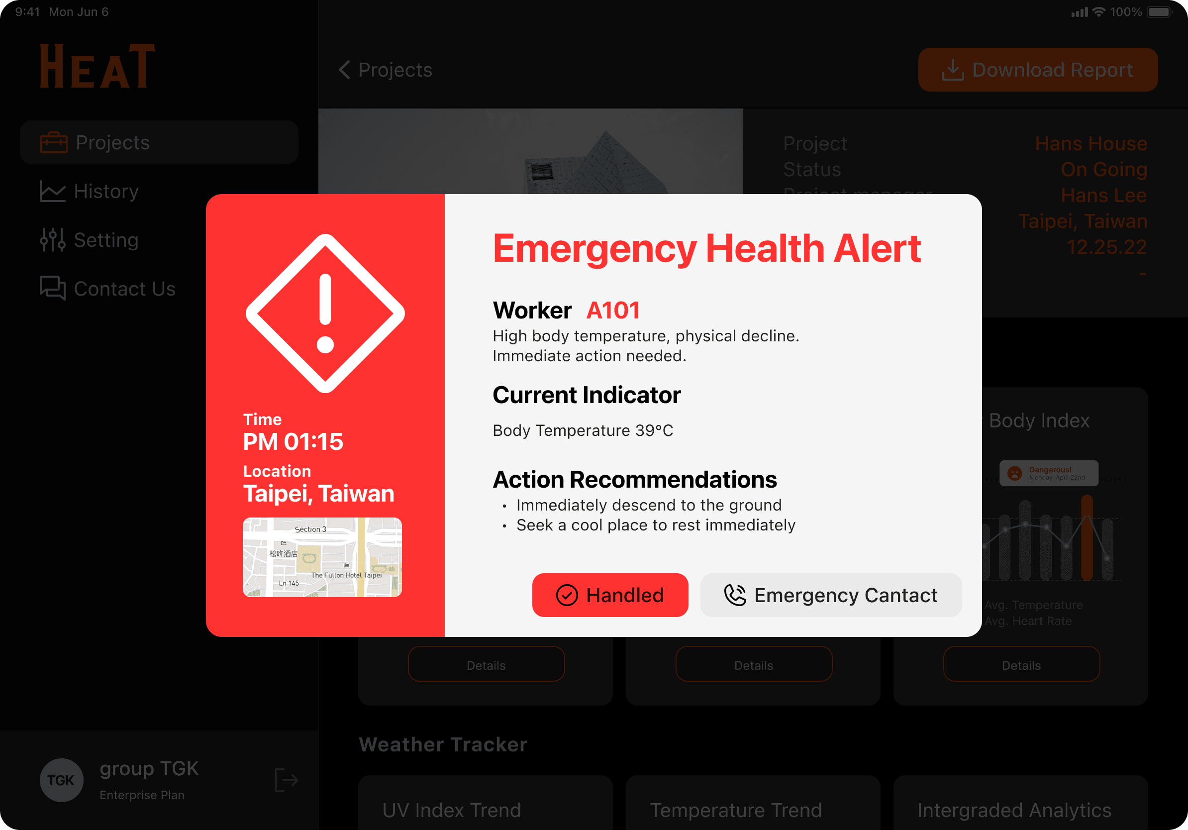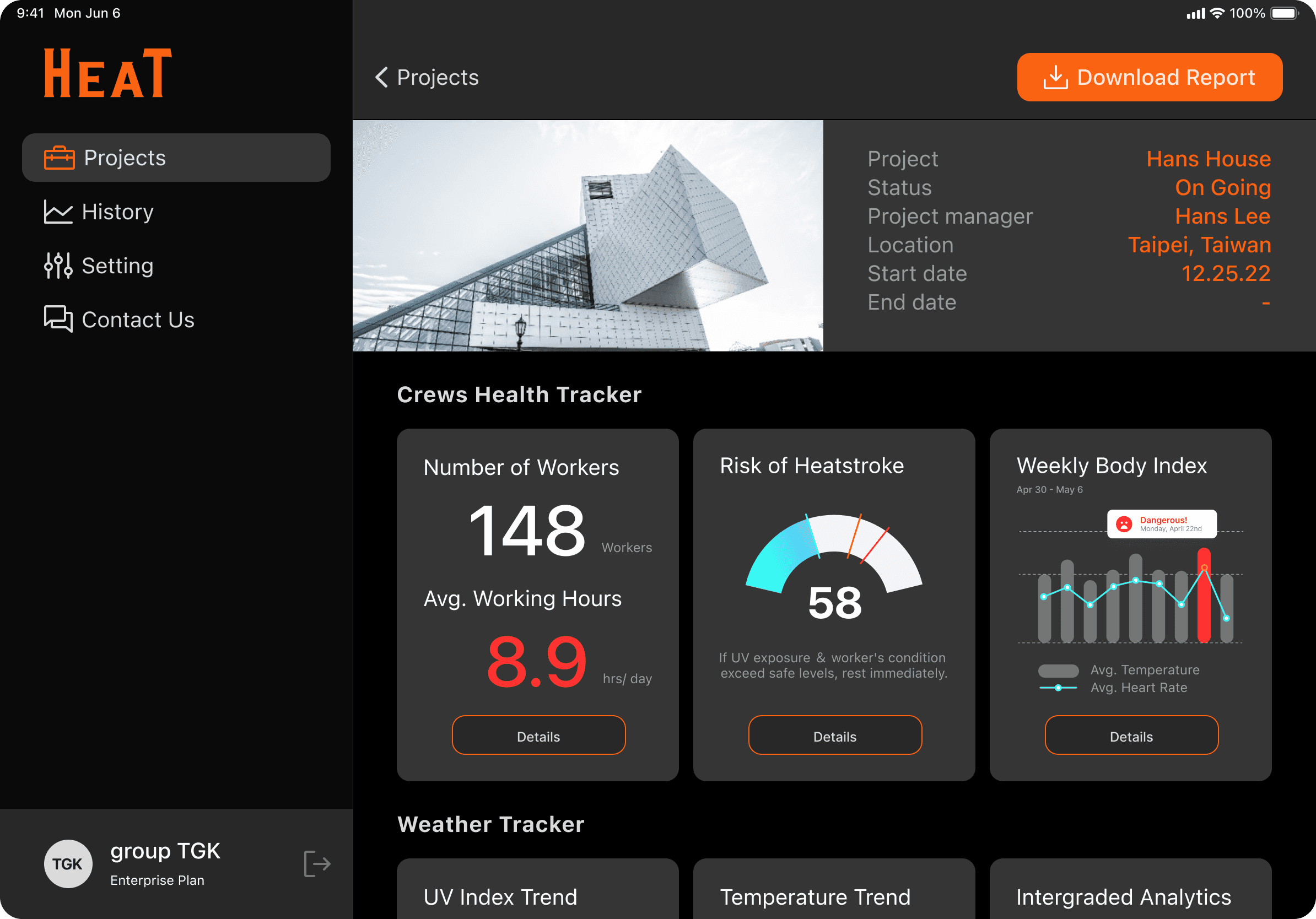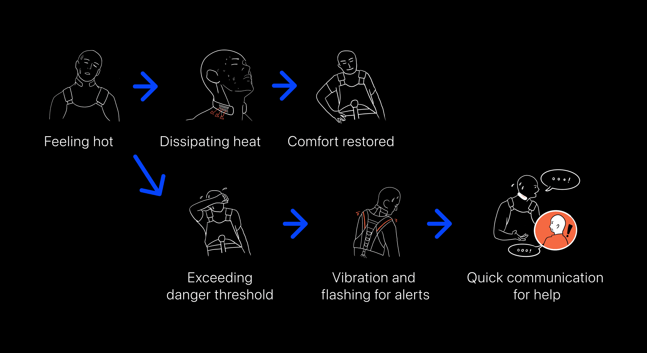 HeaT is an innovative health-tracking SaaS system combined with a wearable cooling harness designed specifically for construction workers.