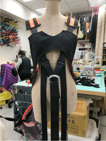 The harness needed to be lightweight, breathable, rechargeable, and not bulky, so it wouldn’t hinder workers' movements.